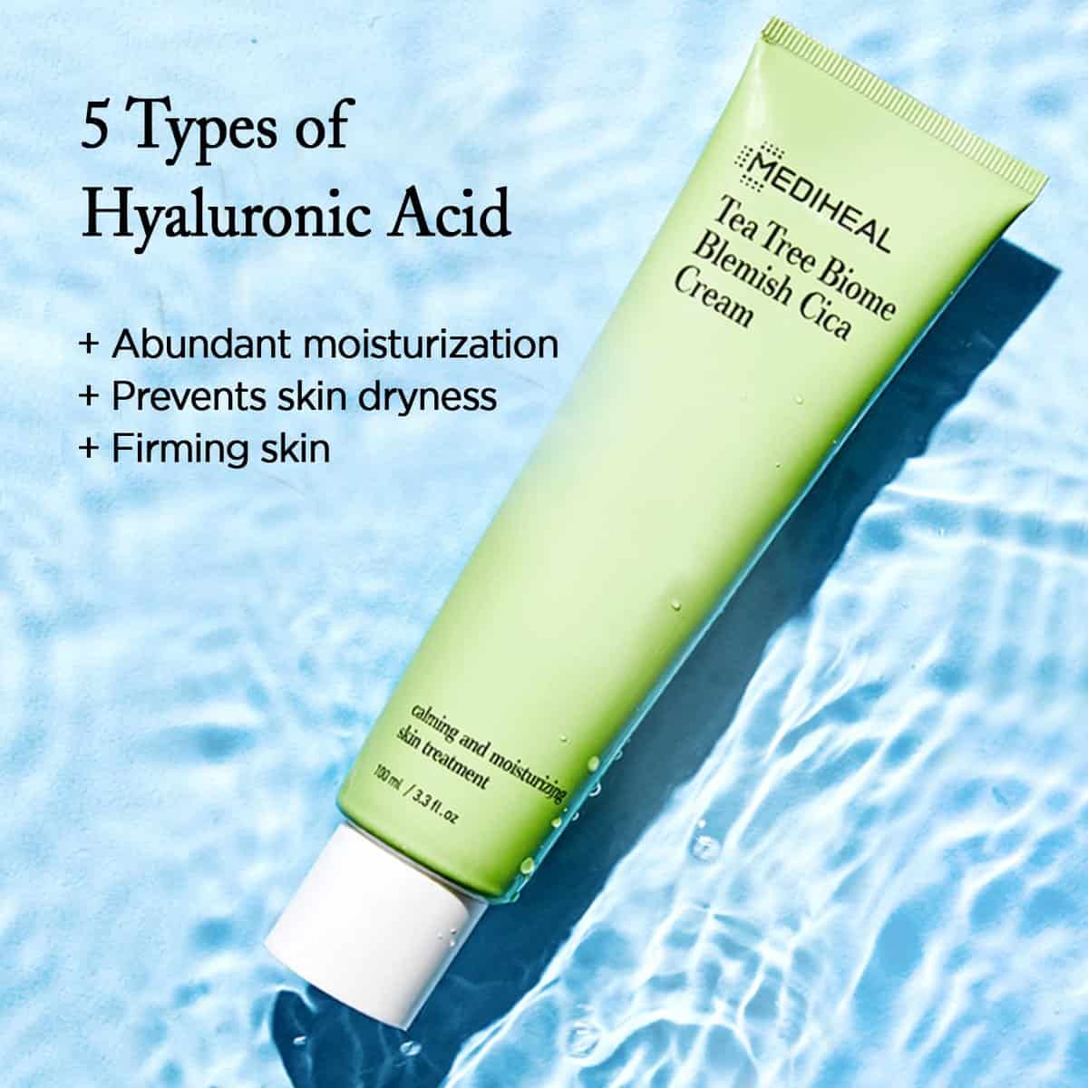 Mediheal Tea Tree Biome Blemish Cica Calming Cream este o cremă hidratantă lejeră, special concepută pentru a crea un strat protector care previne evaporarea umidității și a ingredientelor active din piele.