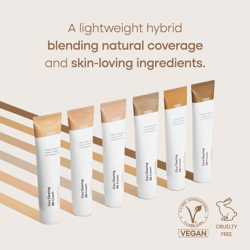 PURITO Cica Clearing este o cremă BB ușoară și non-iritantă care oferă tenului un finish natural și radiant.