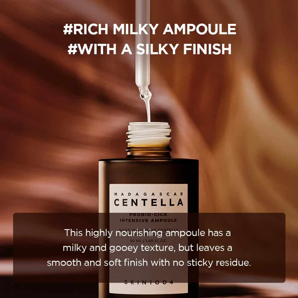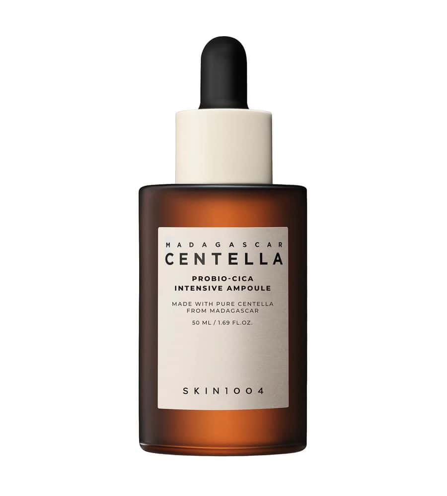SKIN1004 Madagascar Centella Probio-Cica Intensive Ampoule regenerează și hidratează pielea, reducând sensibilitatea și roșeața datorită formulei sale bogate în probiotice, ceramide și extract de Centella.